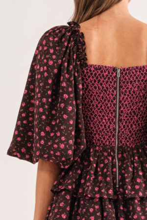 S1164D-1-P – Frequency Pink Puff Sleeve Dress